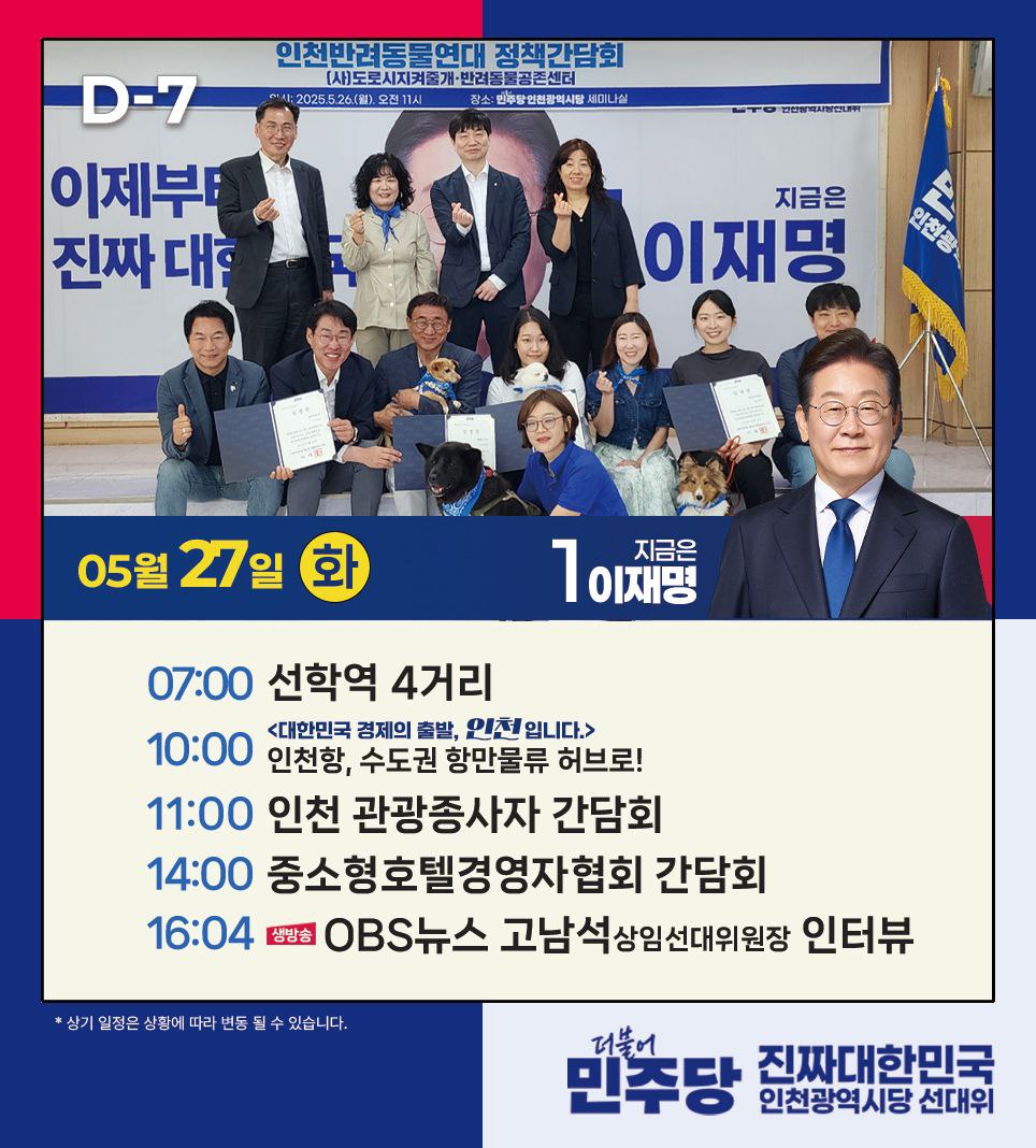 - [카드뉴스] 5월 27일 인천의빛 유세일정