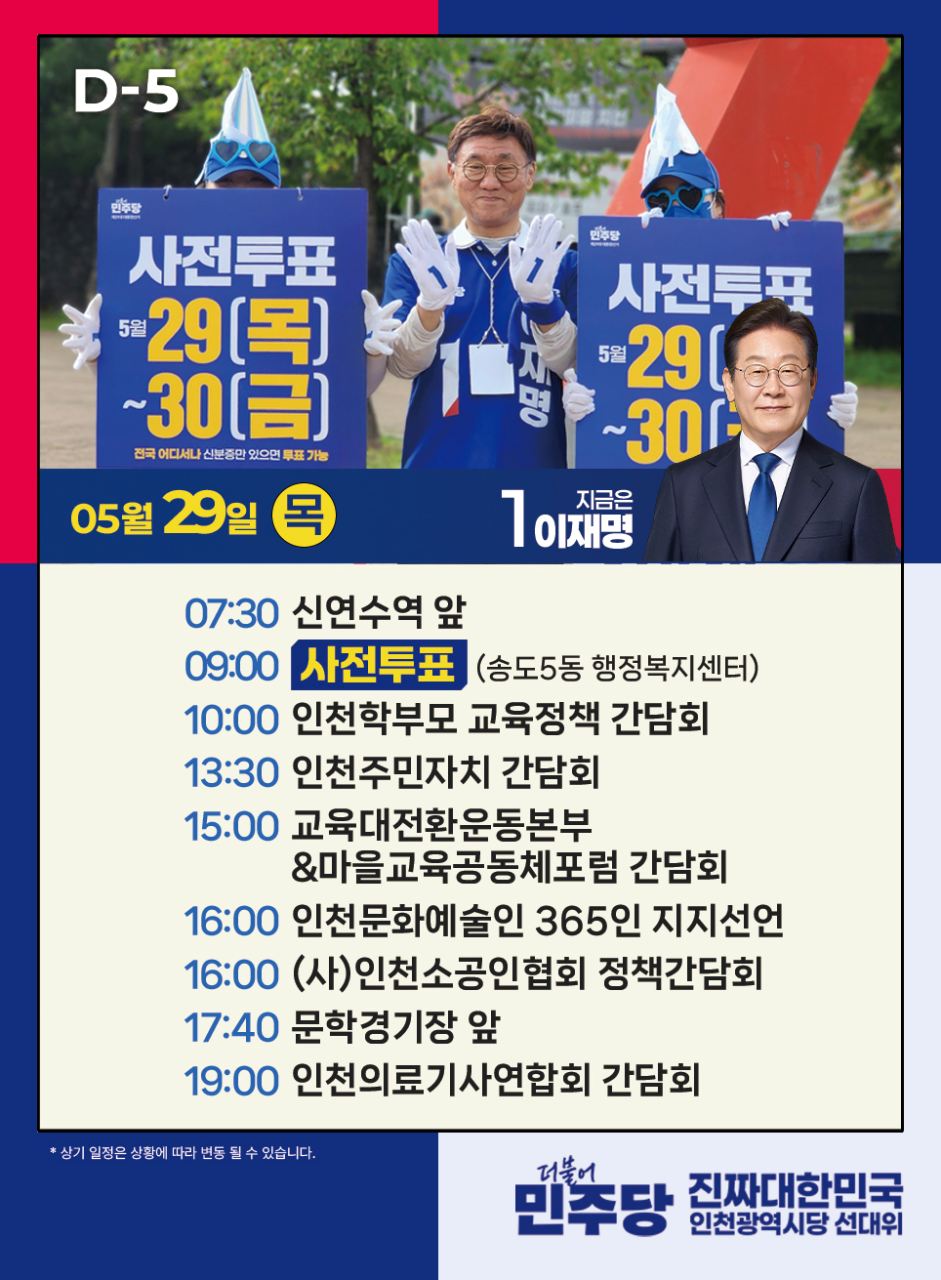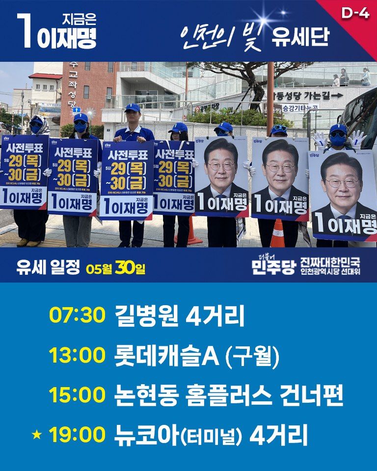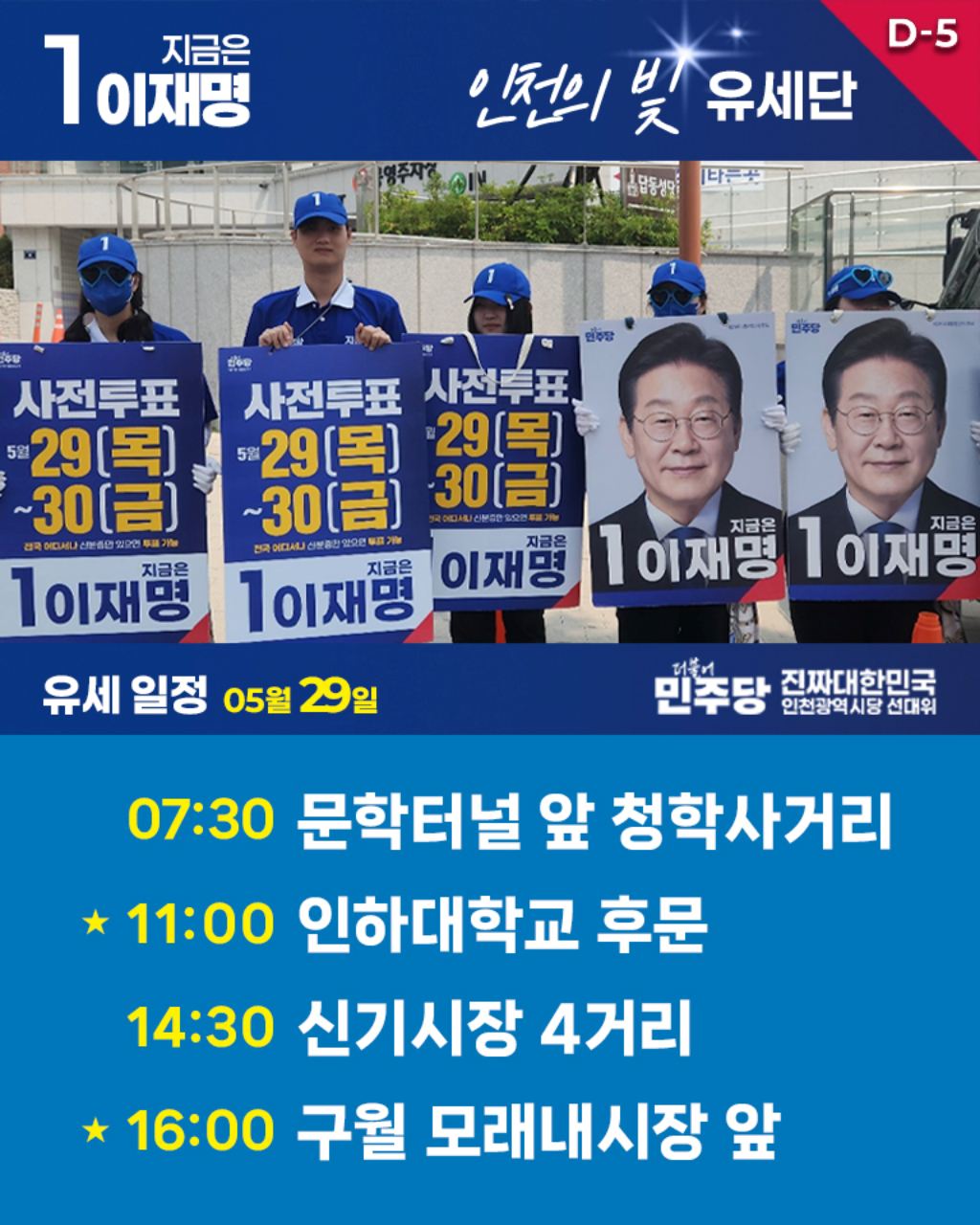 - [카드뉴스] 5월 29일 인천의빛 유세일정
