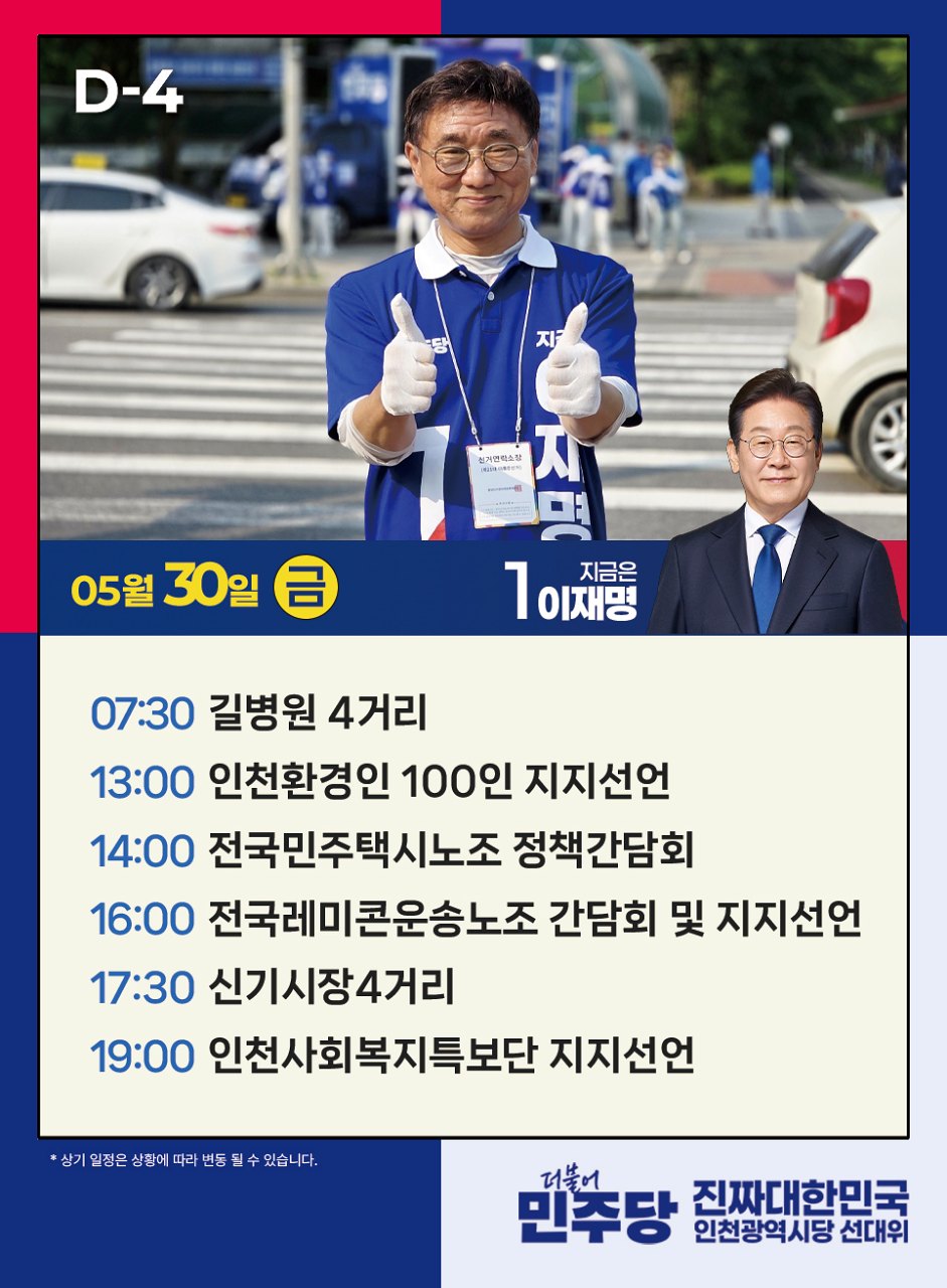 - [카드뉴스] 5월 30일 인천의빛 유세일정