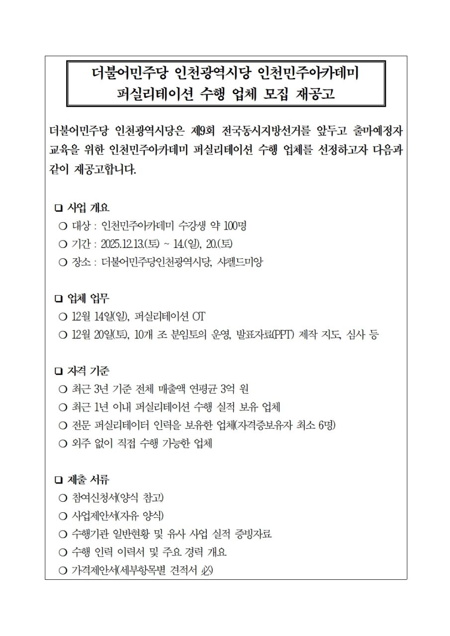 251203 인천민주아카데미 퍼실리테이션 수행 업체 모집 공고 참여신청서.hwp
