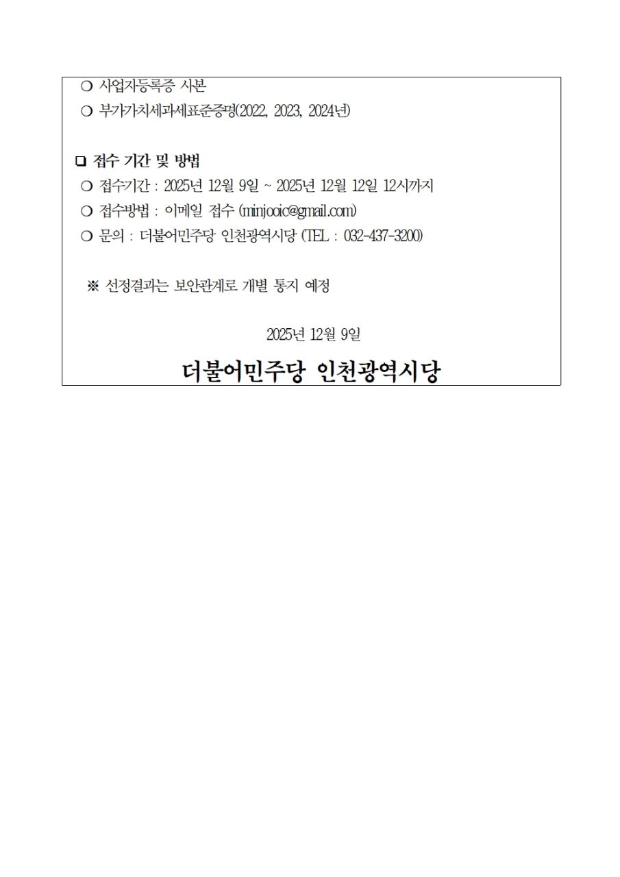 더불어민주당 인천시당 선출직공직자평가 기초단체장 여론조사 수행기관 모집 공고