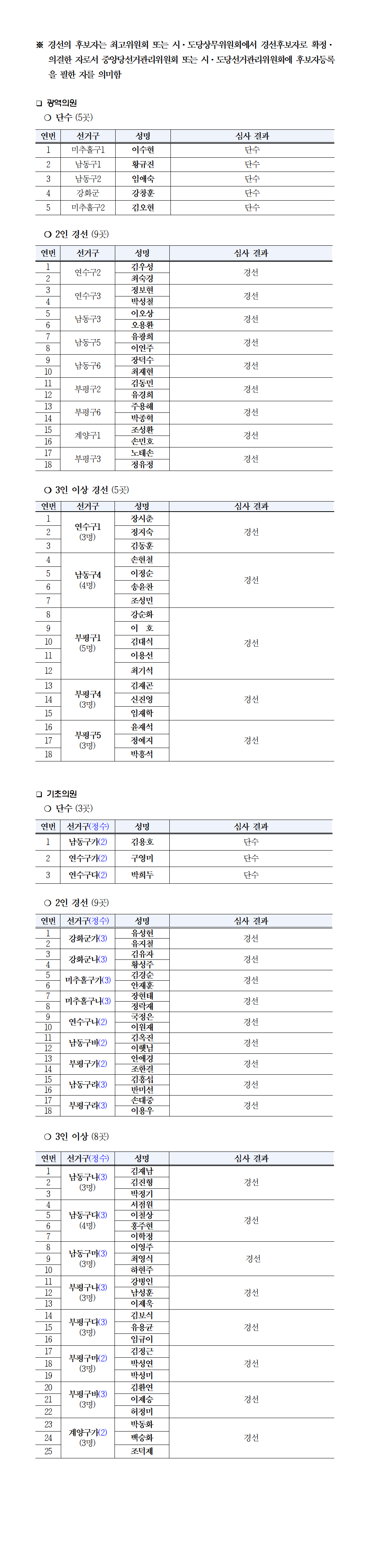 제9회 전국동시지방선거 제2차 공천 심사 결과 발표